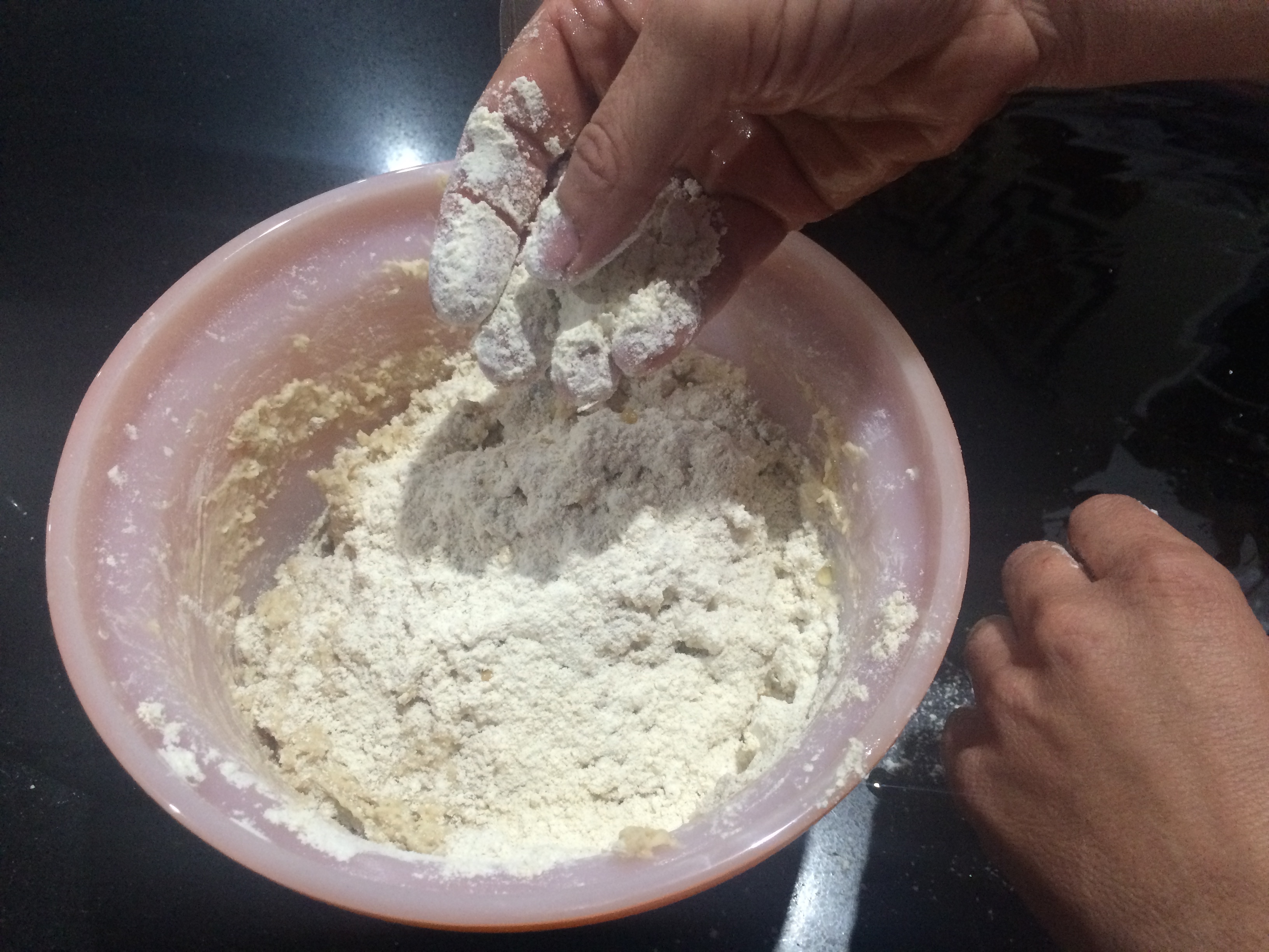 3. Mix your flour in so that it becomes a sticky ball like this…